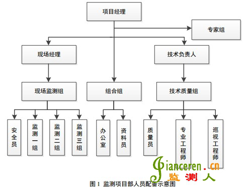 在敘述完監(jiān)測(cè)技術(shù)保證措施后,本部分應(yīng)對(duì)如何合理優(yōu)化配置相關(guān)人員,以滿足監(jiān)測(cè)工作要求, 同時(shí)兼顧經(jīng)濟(jì)原則進(jìn)行詳細(xì)介紹。建議本部分參考投標(biāo)文件中相關(guān)人員信息,通過(guò)項(xiàng)目部人員組織架構(gòu)圖與人員信息列表的形式進(jìn)行編寫,具體形式可參考圖 3.1 及表 3.5。