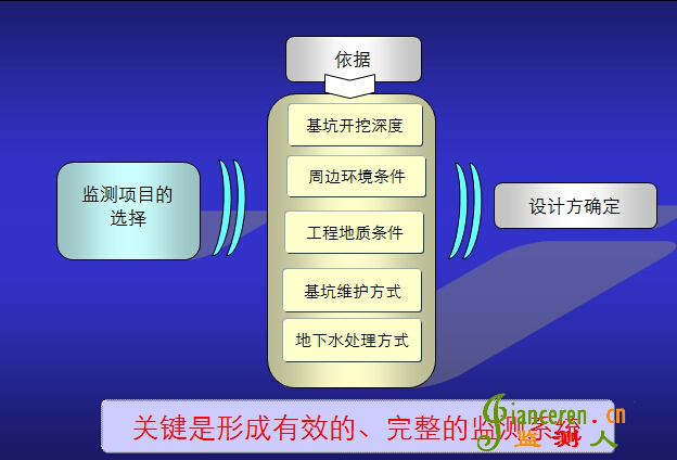 應(yīng)針對監(jiān)測對象的關(guān)鍵部位,做到重點觀測、項目配套并形成有效的、完整的監(jiān)測系統(tǒng)